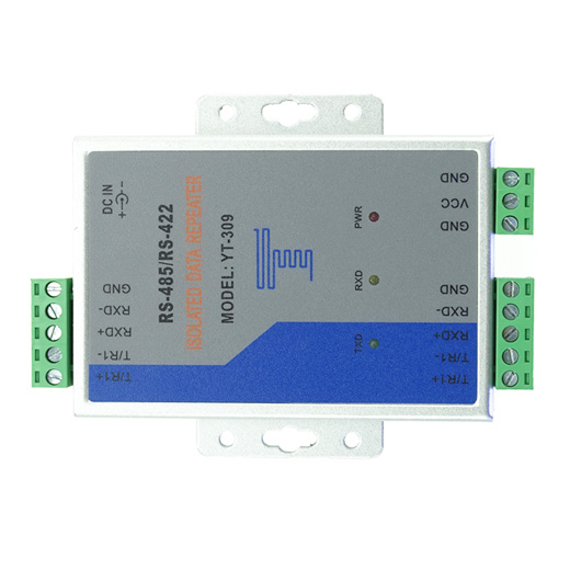 YT-309 光電隔離型中繼器可以為點(diǎn)到點(diǎn)、點(diǎn)到多點(diǎn)的通信提供可靠的連接,點(diǎn)到多點(diǎn)每臺中繼器可允許連128 個(gè)RS-422 或RS-485 接口設(shè)備,數(shù)據(jù)通訊速率300-115.2KBPS,帶有電源指示燈及數(shù)據(jù)流量指示燈可指示故障情況。