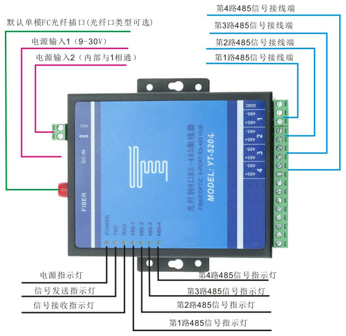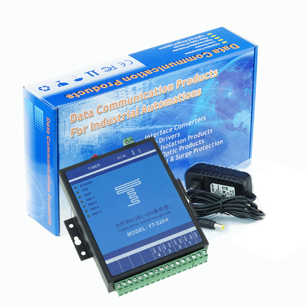 YT-5204 單模光纖轉(zhuǎn)4口RS485集線器具有抗干擾能力強(qiáng),傳輸距離遠(yuǎn)等特點(diǎn),是大型485工程項(xiàng)目的首選。該產(chǎn)品突破了傳統(tǒng)RS-232/422/485接口通訊距離與通訊速率的矛盾,同時(shí)也解決了電磁干擾、地環(huán)干擾和雷電破壞的難題,大大提高了數(shù)據(jù)通訊的可靠性、安全性和保密性,可廣泛用于各種工業(yè)控制、過(guò)程控制和交通控制等場(chǎng)合,特別適合銀行、電力及對(duì)電磁干擾環(huán)境有特殊要求的部門和系統(tǒng)。
