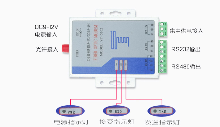 1、YT-5202光纖轉2路RS485收發(fā)器 1個