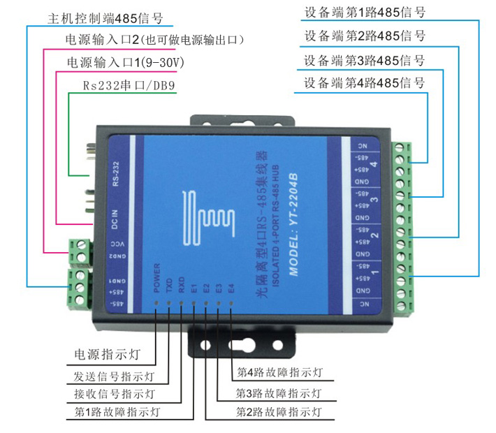 YT-2204B采用合金外殼設(shè)計,采用壓線端子接口,配有可插撥接線端子,使用靈活方便,廣泛用于點對點通訊、工業(yè)自動化控制系統(tǒng)、一卡通、門禁系統(tǒng)、停車場系統(tǒng)、工業(yè)集散分布系統(tǒng)、各類遙控測系統(tǒng)、POS收款機、銀行、保險、證券、食堂售飯系統(tǒng)、交通收費系統(tǒng)、各類PLC、數(shù)據(jù)電度表、煤氣表等。