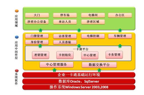 企業(yè)園區(qū)一卡通由密鑰管理系統(tǒng)、卡片初始化系統(tǒng)、一卡通基礎(chǔ)平臺(tái)、門禁管理系統(tǒng)、人員出入管理系統(tǒng)、消費(fèi)系統(tǒng)、自助服務(wù)系統(tǒng)、考勤系統(tǒng)、會(huì)議簽到系統(tǒng)、Web查詢系統(tǒng)組成,同時(shí)實(shí)現(xiàn)與遠(yuǎn)距離車輛出入管理系統(tǒng)和梯控系統(tǒng)集成。集團(tuán)內(nèi)部人員憑借一張經(jīng)過授權(quán)的CPU卡,可實(shí)現(xiàn)人車出入控制、員工考勤,集團(tuán)內(nèi)各類消費(fèi),會(huì)議簽到,浴室節(jié)水等應(yīng)用。