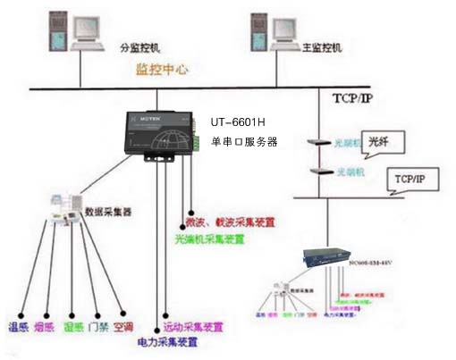 應用研通串口通訊服務器可以實現(xiàn)一個地區(qū)電信機房環(huán)境設備的集中監(jiān)控,安裝,維護簡單,減少了人為事故。