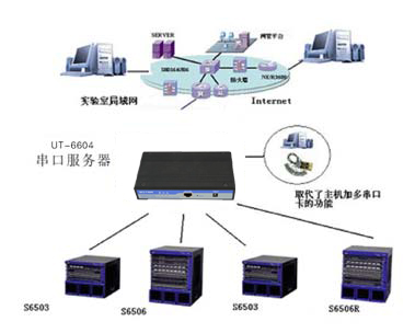 電信實(shí)驗(yàn)室在系統(tǒng)調(diào)試和測試階段,需要檢測各個(gè)廠家提供的各種網(wǎng)絡(luò)傳輸設(shè)備的運(yùn)行可靠性和穩(wěn)定性,而一般的廠家設(shè)備的監(jiān)控接口大都是RS232/422/485 的串行接口,往往每個(gè)實(shí)驗(yàn)室都有幾十臺或上百臺的需要檢測和監(jiān)控的設(shè)備。其中宇泰串口通訊服務(wù)器在該檢測體系統(tǒng)中扮演重要角色,可以很方便的將各個(gè)設(shè)備的接口信息連接到網(wǎng)絡(luò)中進(jìn)行集中監(jiān)控,簡化了連接方式,實(shí)現(xiàn)檢測系統(tǒng)的網(wǎng)絡(luò)化,以便在任何一個(gè)有互聯(lián)網(wǎng)絡(luò)或者手機(jī)網(wǎng)絡(luò)的地方控制或查看您的設(shè)備運(yùn)行情況。