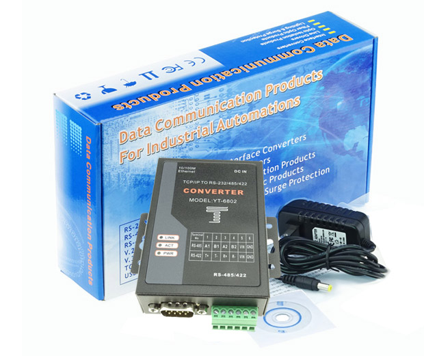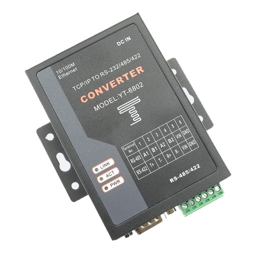 I. Product OverviewYT-6802 serial port server is an industrial grade RS232/485/422 serial port with photoelectric isolation that converts and transmits Ethernet TCP/IP protocol in a bidirectional manner. It transforms traditional serial port communication into network communication, achieving fast networking of serial port devices. The converter adopts a transparent transmission method, and users do not need to be aware of the complex TCP/IP protocol. They can achieve network connection of existing serial devices without changing the program, saving you valuable time and existing investment. Simple and flexible configuration and extremely reliable performance meet any demanding application, making it your ideal choice.