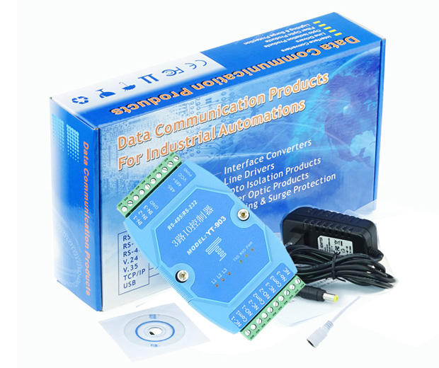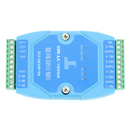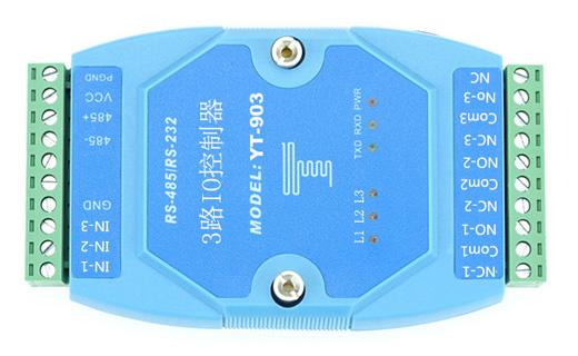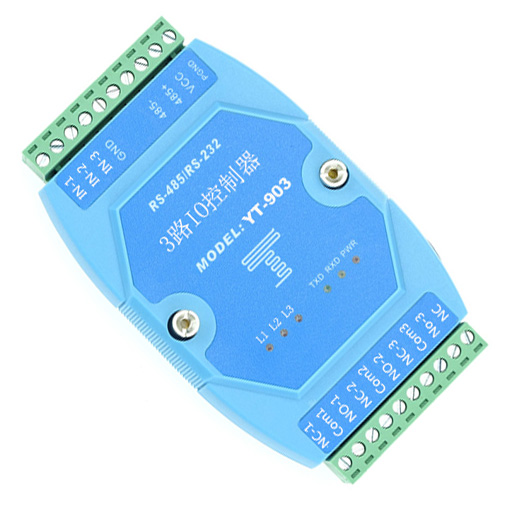 YT-903是一款穩(wěn)定可靠的3路開關(guān)狀態(tài)檢測及控制模塊,提供3路開關(guān)量輸入至RS485信號輸出的采集轉(zhuǎn)換,以及通過RS485控制3路繼電器輸出功能??梢酝ㄟ^RS485實現(xiàn)對遠(yuǎn)程設(shè)備通斷狀態(tài)的采集以及控制,通信協(xié)議采用Modbus RTU。YT-903可以實時檢測3路開關(guān)的通斷情況,并轉(zhuǎn)換成RS485信號輸出;帶3路繼電器輸出控制(1A 250VAC);采用Modbus RTU 通信協(xié)議;RS485通訊接口提供每線600W浪涌保護(hù);電源具有良好的過流過壓、防反接保護(hù)功能;3路LED指示開關(guān)輸入或者輸出狀態(tài)。