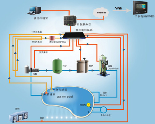 泳池自動(dòng)化系統(tǒng),一種改善游泳池環(huán)境的智能自動(dòng)化控制系統(tǒng);它可使各種泳池環(huán)境控制像家電操作一樣便捷。在池邊(或鄰近位置)輕觸按鍵,帶動(dòng)現(xiàn)場(chǎng)相關(guān)執(zhí)行機(jī)構(gòu),既可調(diào)控水位,水溫,水質(zhì)以及周邊環(huán)境。