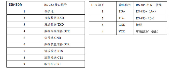 RS-232C引腳分配 ,RS-485輸出信號(hào)及接線(xiàn)端子引腳分配