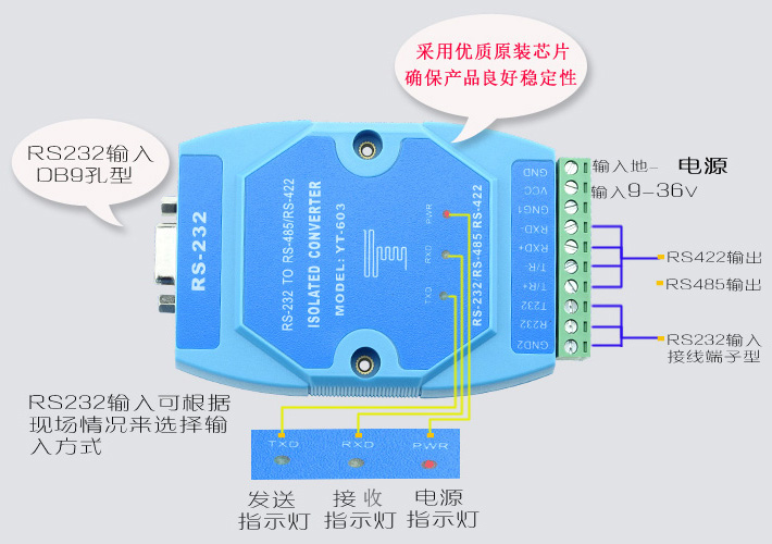 1、YT-603工業(yè)級光電隔離RS232轉(zhuǎn)RS485/422轉(zhuǎn)換器 1個