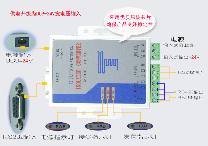 1、YT-317工業(yè)級(jí)光電隔離RS232轉(zhuǎn)RS485/422轉(zhuǎn)換器 1臺(tái)